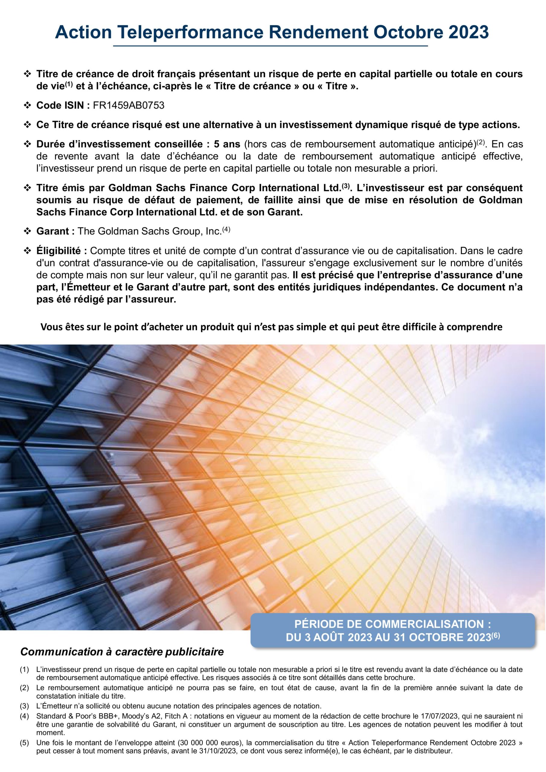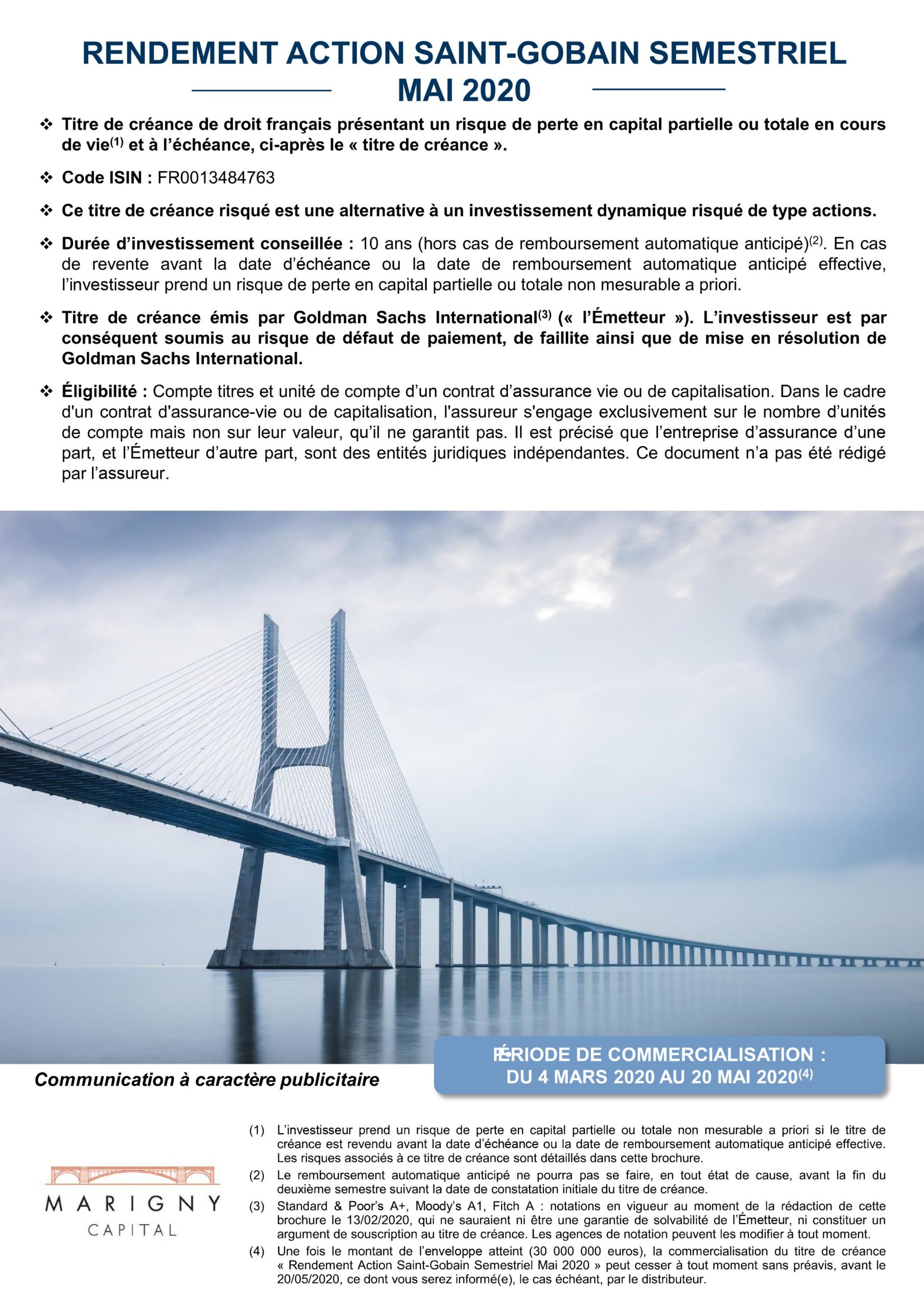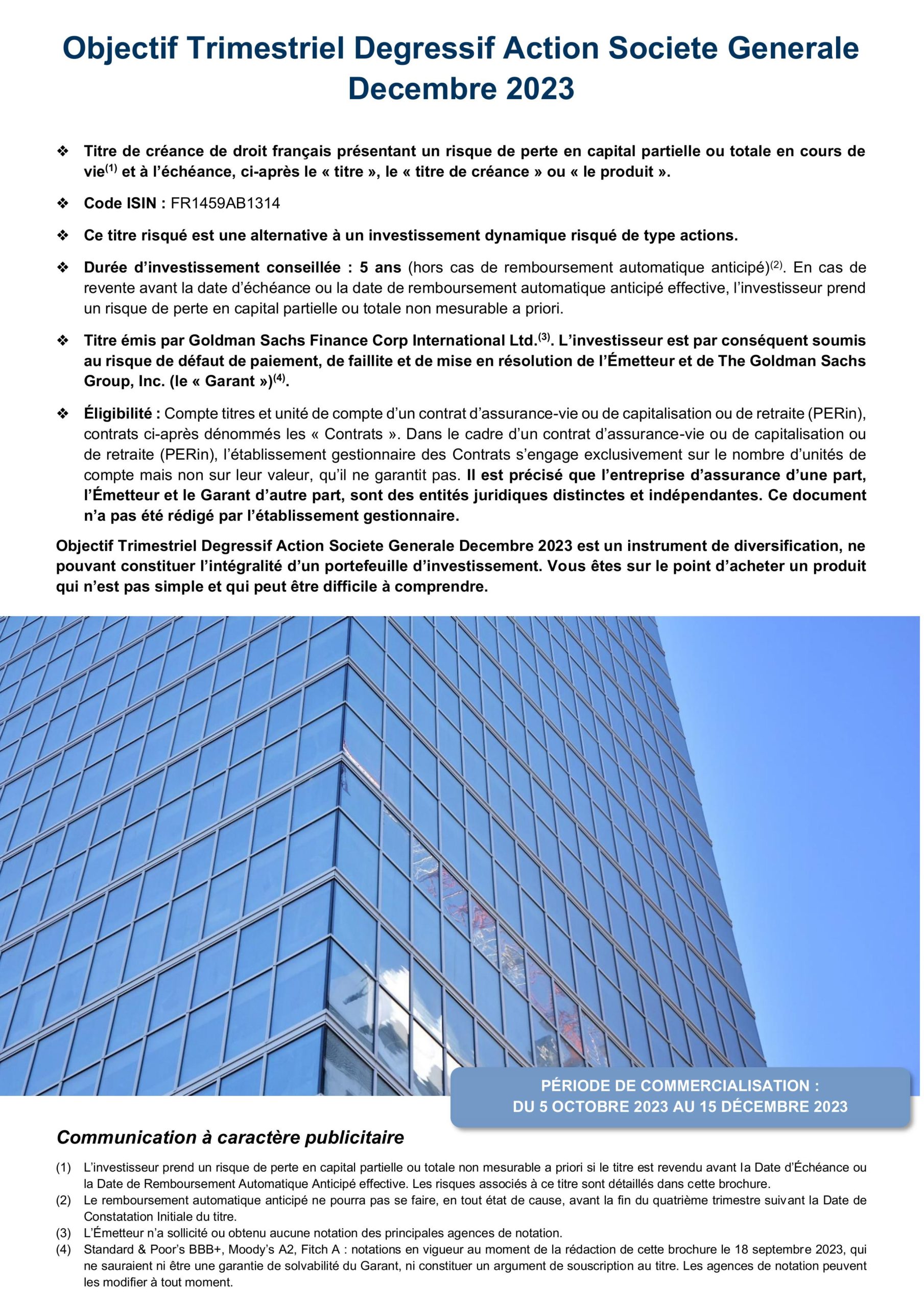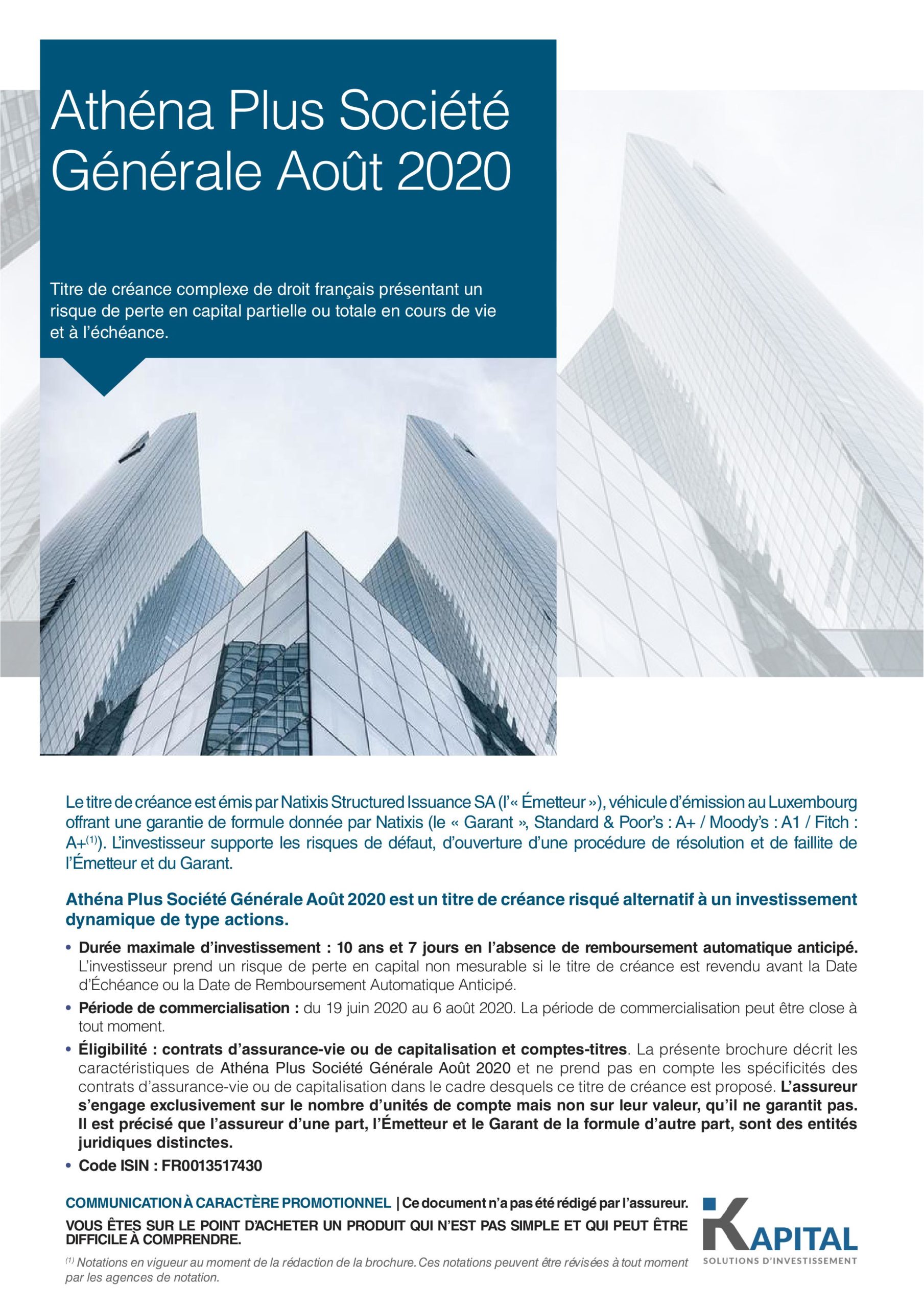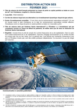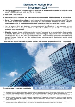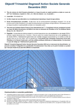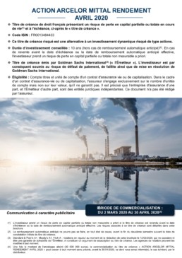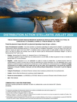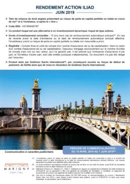 Les supports non encore remboursés conservent un risque de perte en capital partielle ou totale en cours de vie et à leur échéance, en cas de baisse de / des indices ou de / des actions de références et/ou dégradation de la qualité de crédit de l’émetteur et de faillite, de défaut de paiement ou de mise en résolution de l’émetteur.